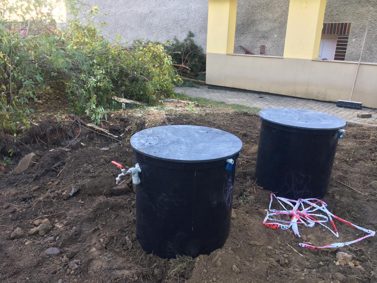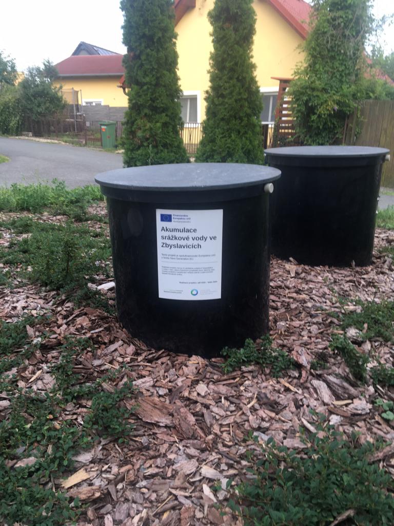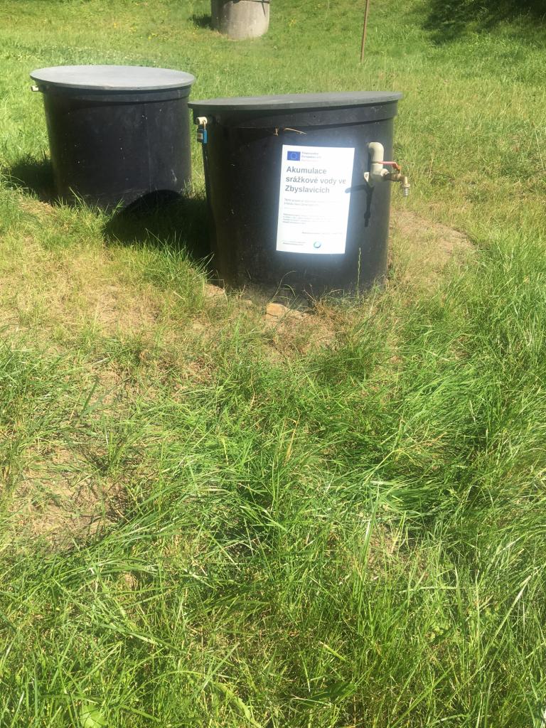 V souvislosti s projektem Revitalizace zeleně v obci Zbyslavice vznikla potřeba řešit vodu pro případné zalévání nově zasazených keřů a stromů. Jednoduchým řešení vzniklé potřeby bylo zadržování srážkové vody z veřejných budov a její další využití.